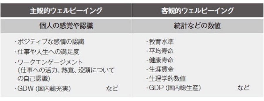 GDP(国内総生産)は国民の幸せ実感を反映していない問題から、近年はGDW(国内総充実)という主観的指標が国内外で提唱されている