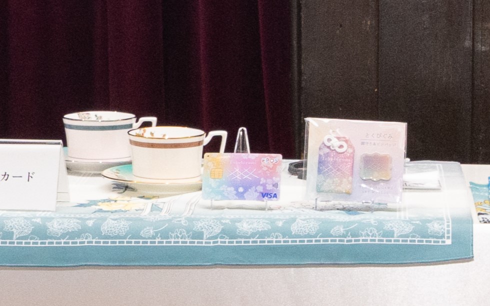 また、会場には丸井グループのめざす「『好き』が駆動する経済」に関連する取り組みである「ヘラルボニーカード」「とくびぐみエポスカード」「エポスペットカード」をご紹介するブースもあり、会見前後にたくさんの記者の皆さまにご覧いただきました。