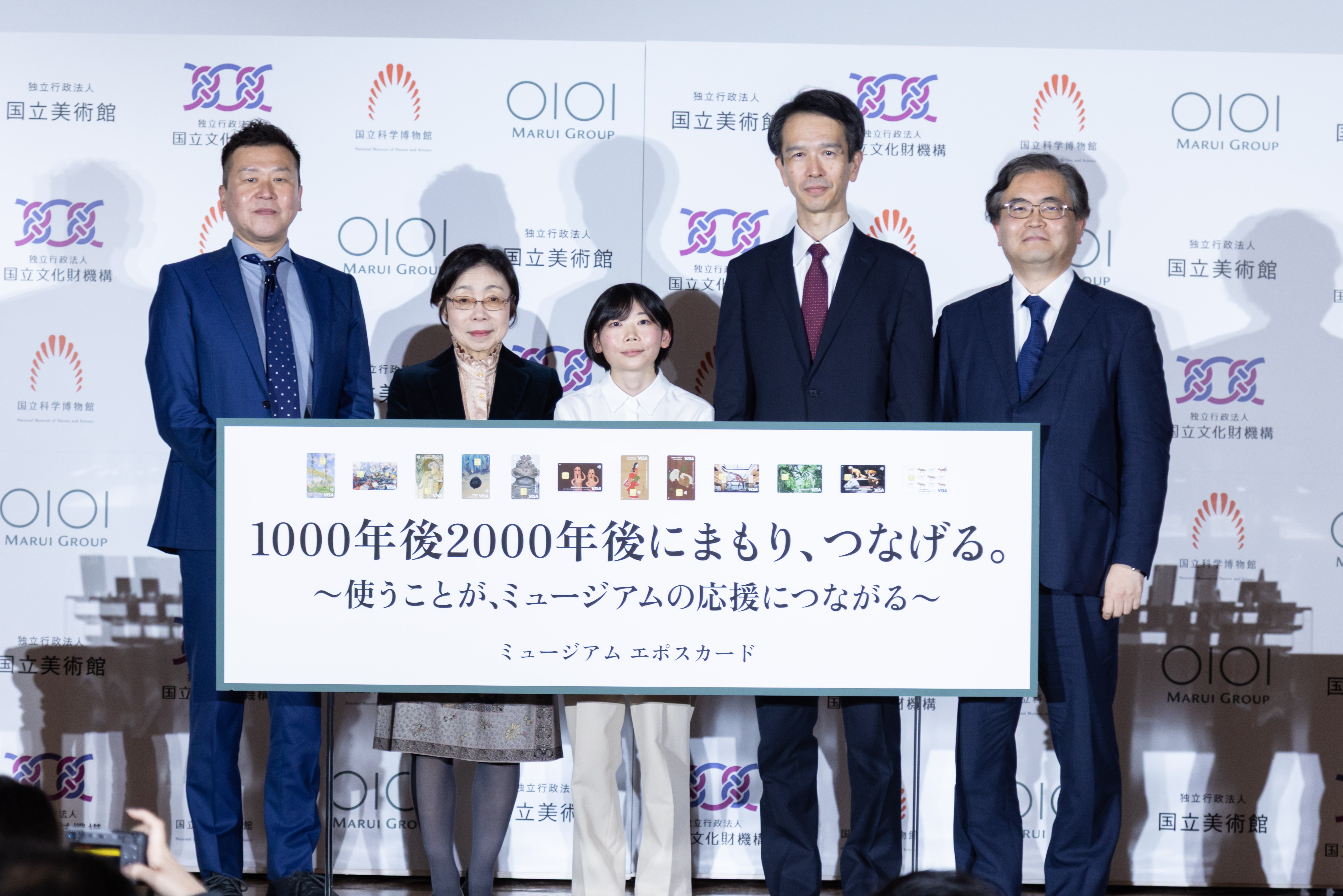 (写真左から)丸井グループ 常務執行役員 CDO 相田 昭一、国立美術館 東京国立近代美術館長 小松 弥生さま、新宿マルイ 三橋 真唯、国立文化財機構 理事 水田 功さま、国立科学博物館 理事・副館長 栗原 祐司さま