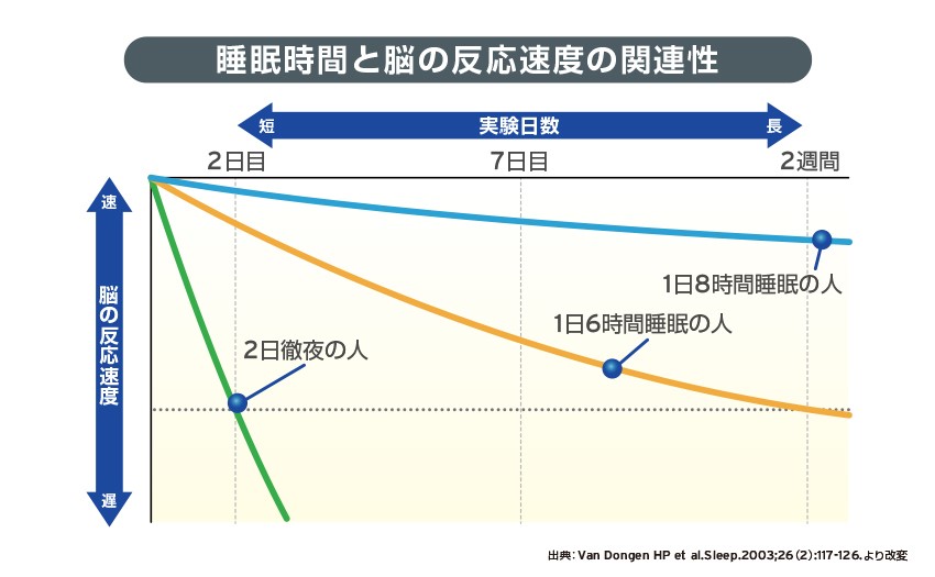 2週間6時間睡眠の人は、2日間徹夜の人と同程度のパフォーマンスになる