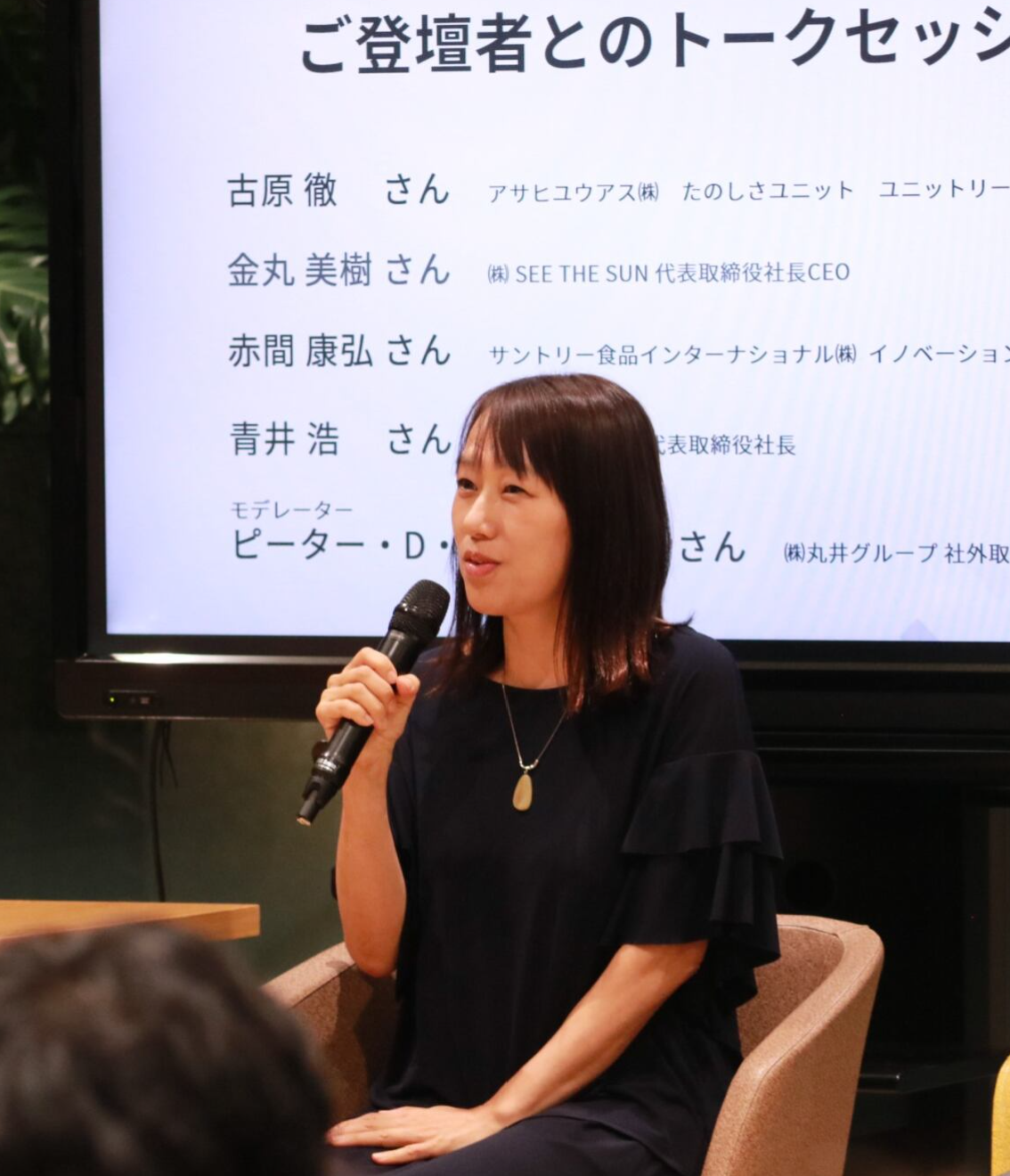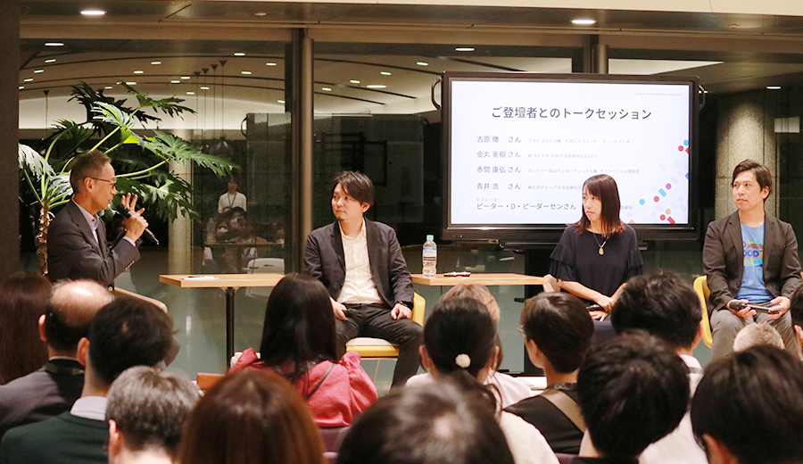 イベントでは、ご自身がソーシャル・イントラプレナーとして活躍されている3名のゲストによる講演、さらに丸井グループ代表取締役社長の青井、社外取締役のピーダーセンさんも交えたトークセッションや、参加者同士のネットワーキングなどを行いました。