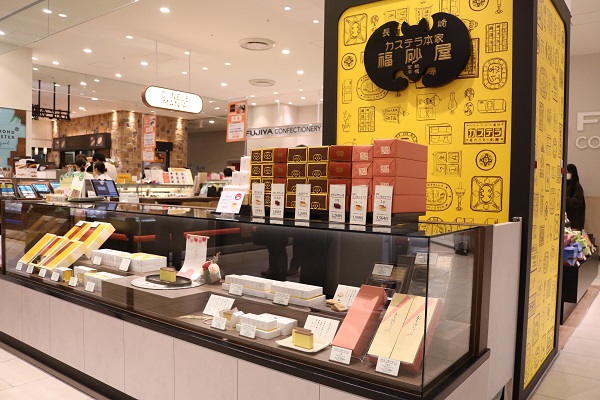 1624年創業の老舗カステラ本家福砂屋。創業400年を迎えた歴史のある名店が北千住マルイにオープンしました。卵の色が美しいカステラ、何と職人が一本一本焼き上げているそうです。また、柱の黄色い模様はカステラの包装紙からインスピレーションされたデザインになっているそうですよ!