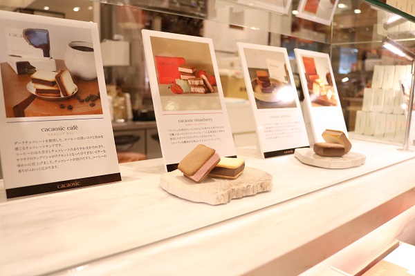 一番人気のチョコレートサンドを筆頭に、さまざまなチョコレートスイーツが揃うcacaosic。大切な人へのギフトに喜ばれるかわいいパッケージも魅力のうちの一つです。また、cacaosic初の常設店のためリアル店舗でお求めいただけるのは北千住マルイのみとなっています!