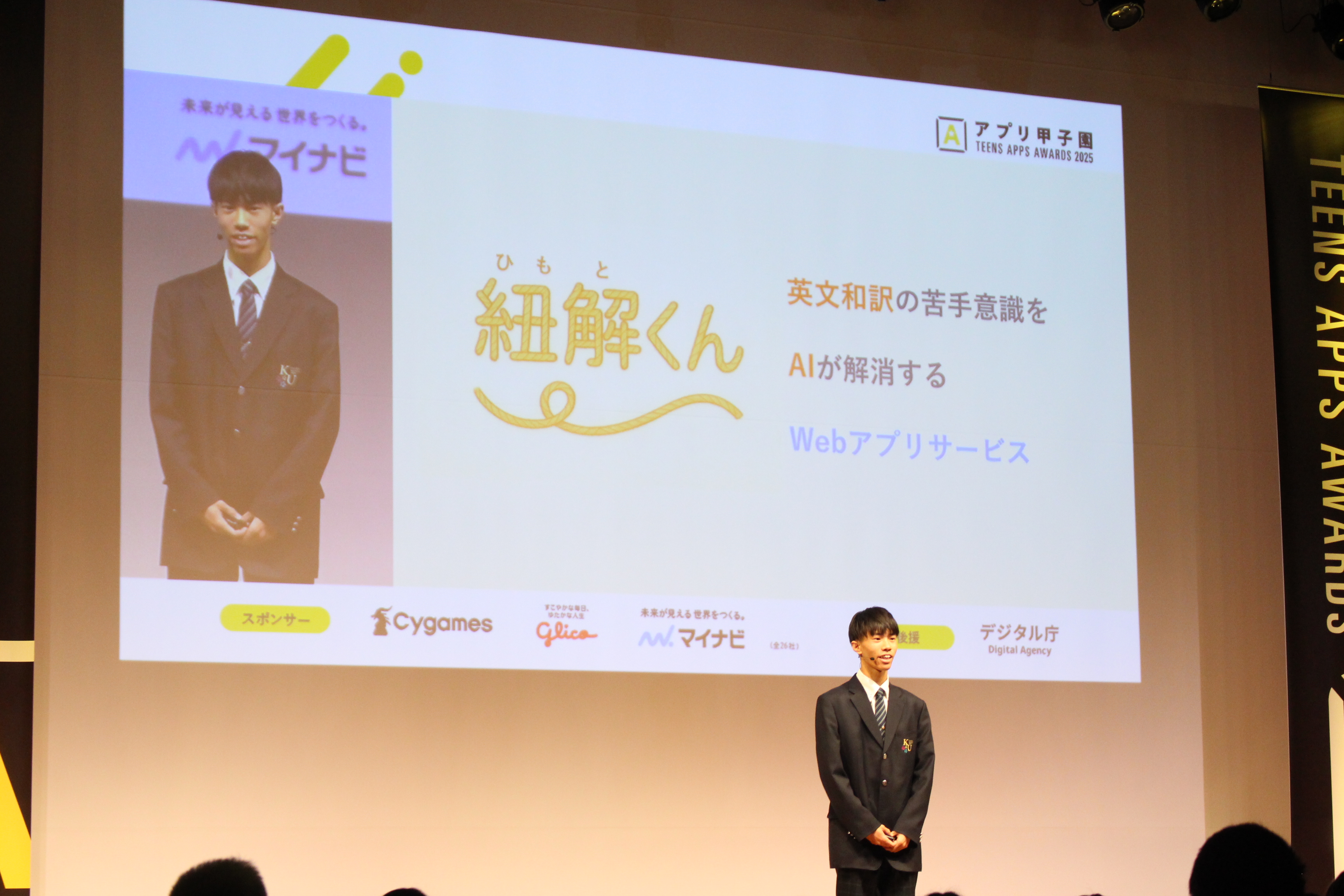 日本最大級の中高生向けアプリ・サービス開発コンテスト「アプリ甲子園」は、今年で15回目を迎えました。11月16日(日)に開催された決勝大会では厳正な審査を勝ち抜いた12チームが、熱いプレゼンテーションをくり広げました。