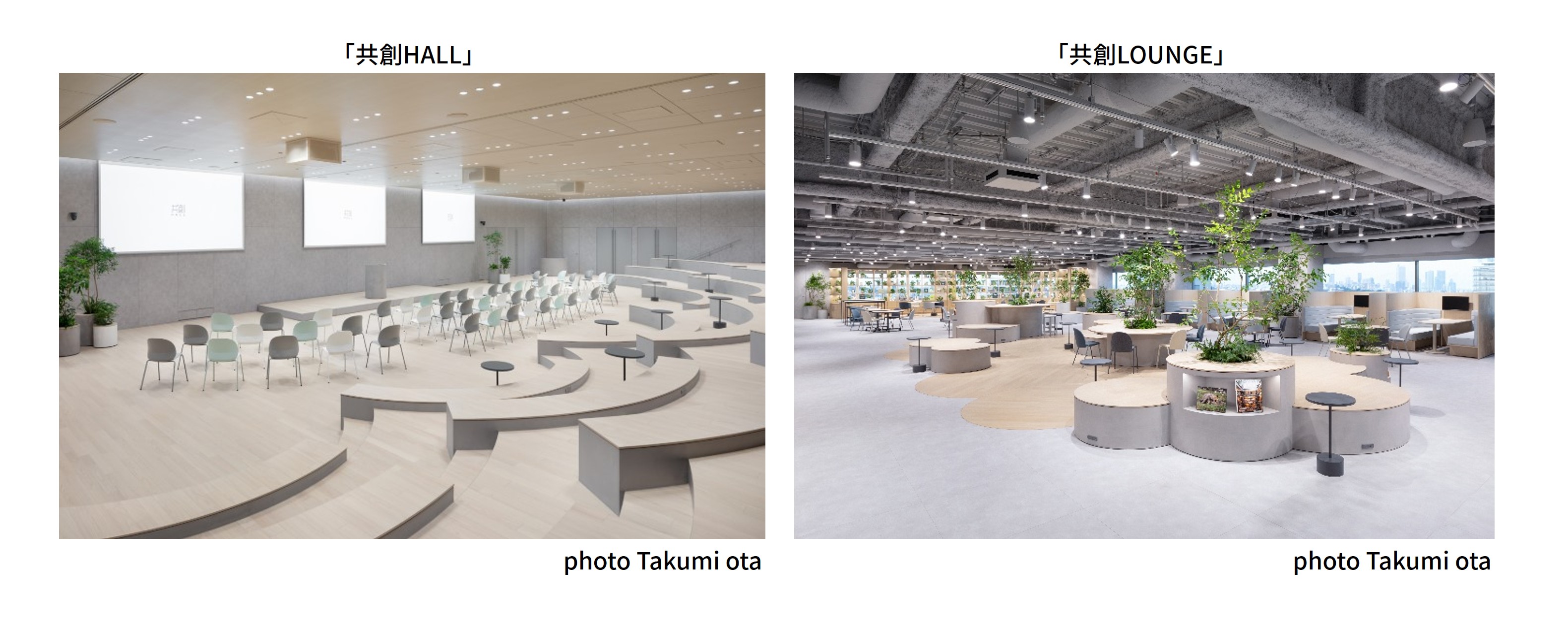 「共創HALL」「共創LOUNGE」からなる<共創型コミュニケーション空間>は、当社の掲げるインパクトの一つ「働く人の『フロー』を生み出す社会の創出」を実現するべく誕生いたしました。