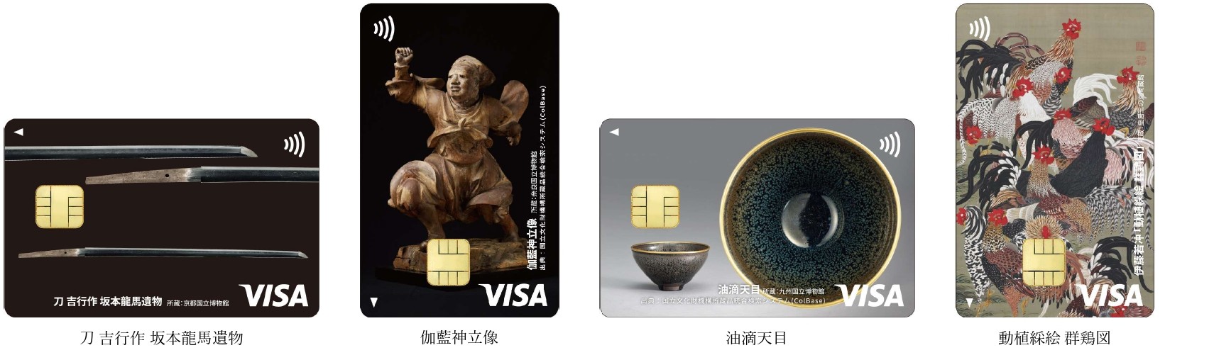 共創先の3法人が運営するミュージアムが収蔵する文化芸術、文化財、標本・資料の中から厳選し、券面にいたしました。お客さまが選んだ券面デザインに応じて、それぞれの法人へ寄付ができます。