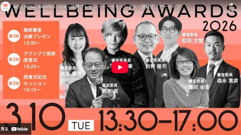 WELLBEING AWARDSは株式会社朝日新聞社などで構成するウェルビーイングアクション実行委員会が主催する表彰制度です。あらゆる「商品・サービス」「活動」「組織」の中で、人々の多様な幸福価値観と健康に向き合い、認め合える社会づくりに特に貢献した事例に光を当て、世の中に広めていくことを目的としています。