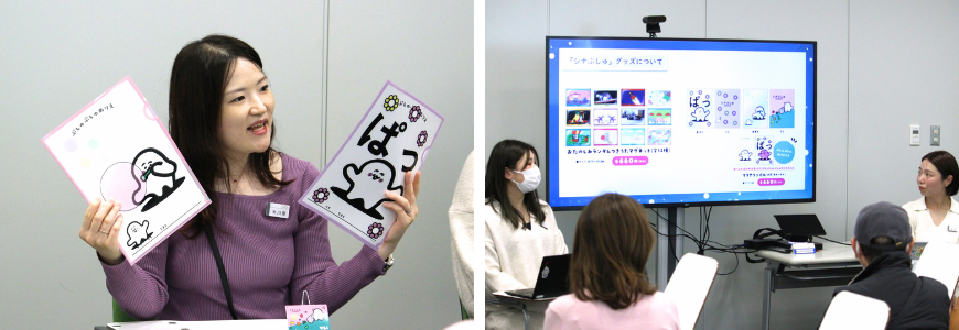 館内ツアーの後半では、2026年3月にデビューしたばかりの「『シナぷしゅ』エポスカード」の担当者、そのカードの誕生を記念するイベントの担当者と、オリジナルグッズの企画・制作担当の、3名の社員によるトークセッションを実施しました。