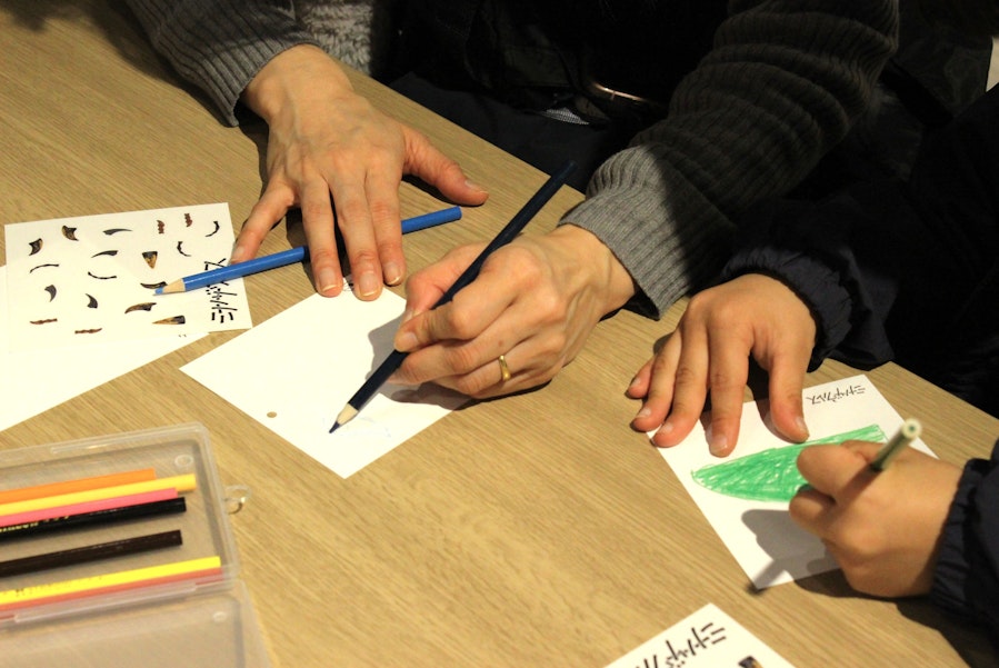 これまでに得た情報をもとに、想像力を広げて自分だけの恐竜を生み出す体験「ミナノザウルスを描こう」へご参加いただけます。展示の化石パーツと同じ形の「化石シール」をカードに貼り、「このパーツは恐竜のどこ?」と想像しながら自由に描き足すことで、創造や発想を育むことができます。